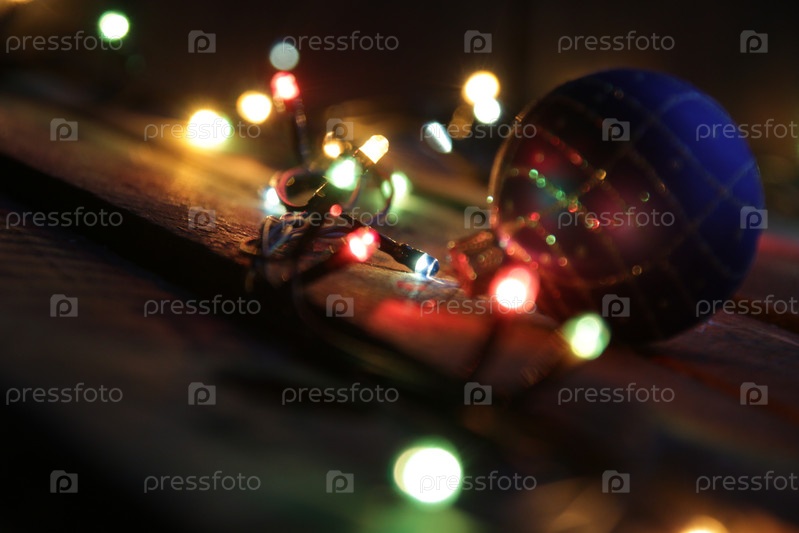 Рождественская гирлянда крупным планом. Новогоднее украшение дома