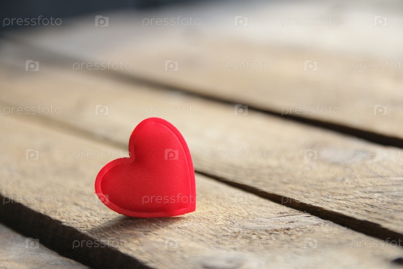 Красное сердце на деревянном фоне. Место для текста. Валентин