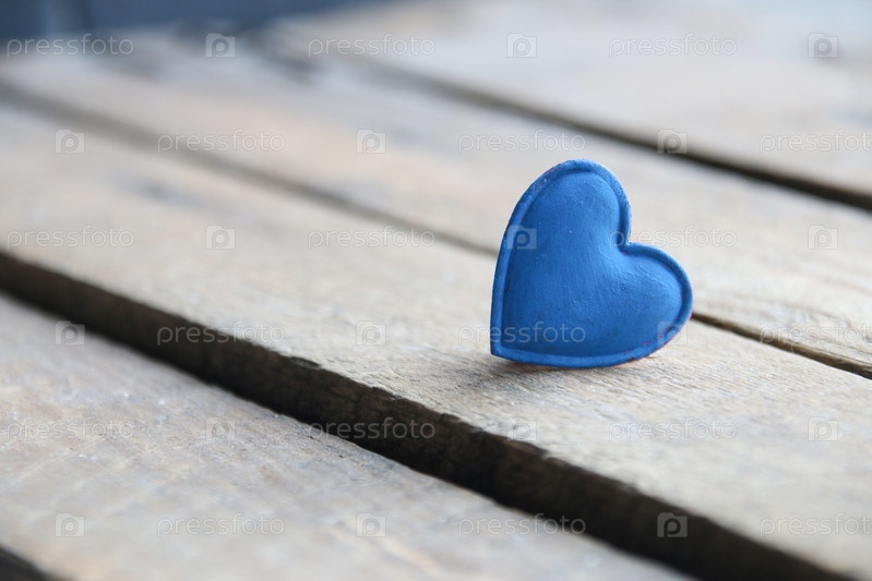 Голубое сердце на деревянном фоне. Место для текста. Валентин. Фон дня рождения