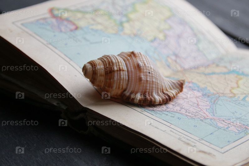 Раковина на старинном морском атласе. Найти путь,
