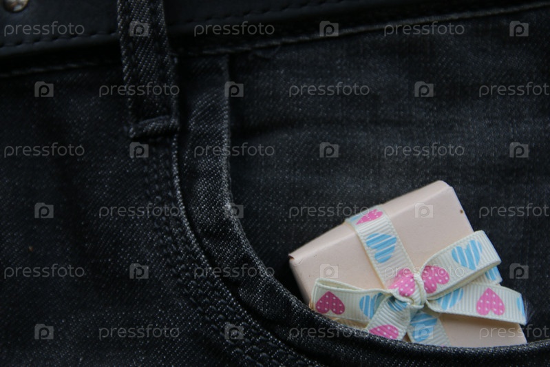 Подарок с лентой в кармане джинсов