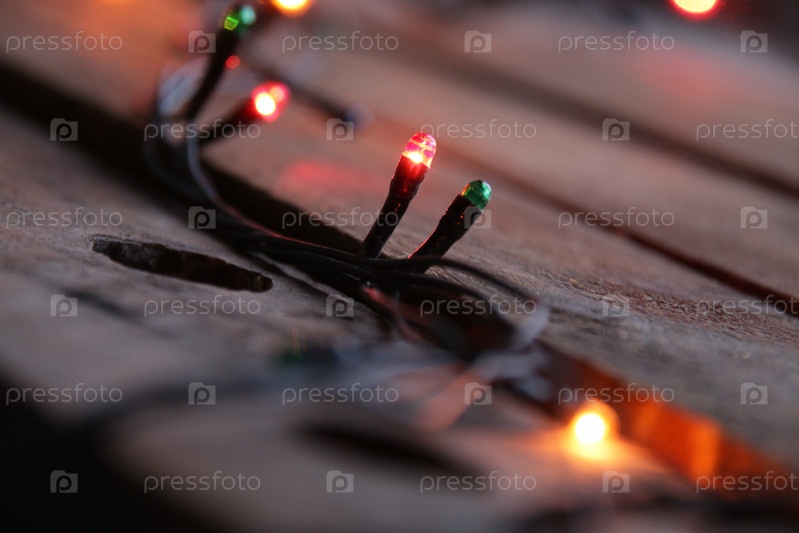 Рождественская гирлянда крупным планом. Новогоднее украшение дома