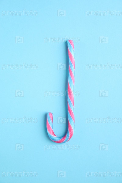 Веселая рождественская открытка. Конфета на синем фоне