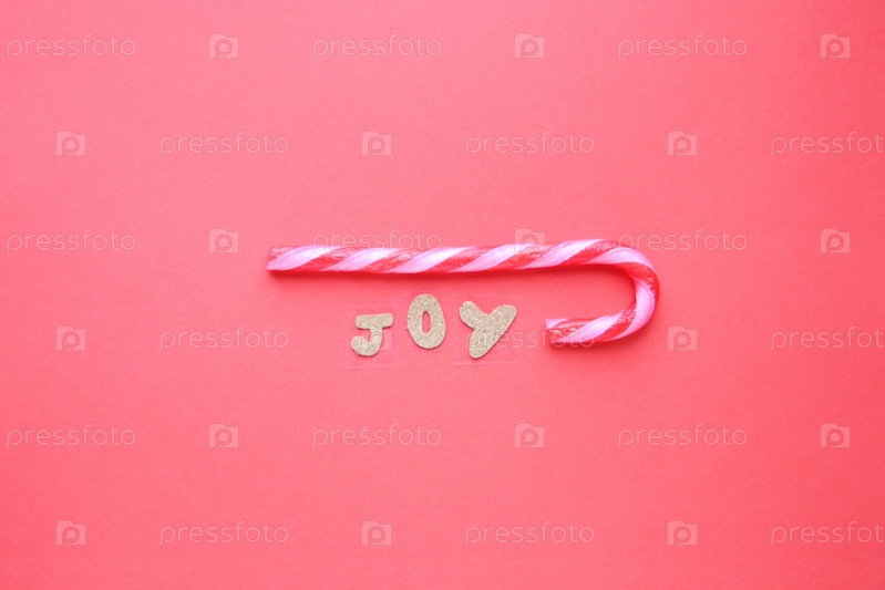 Веселая рождественская открытка. Надпись радость и посох Деда Мороза