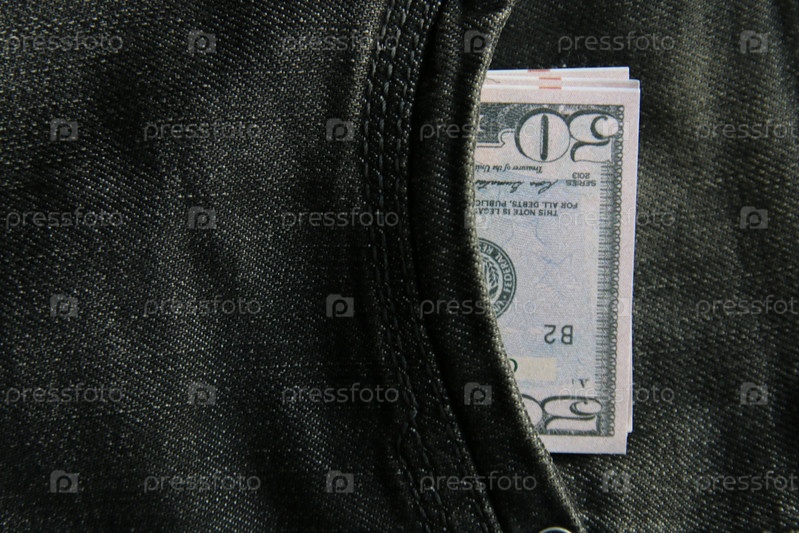 Банкноты долларов США в кармане джинсов