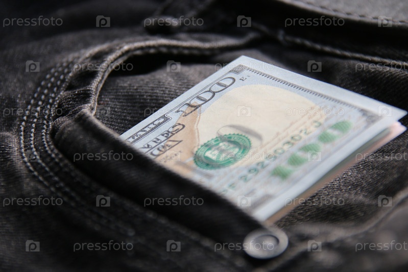 Банкноты долларов США в кармане джинсов