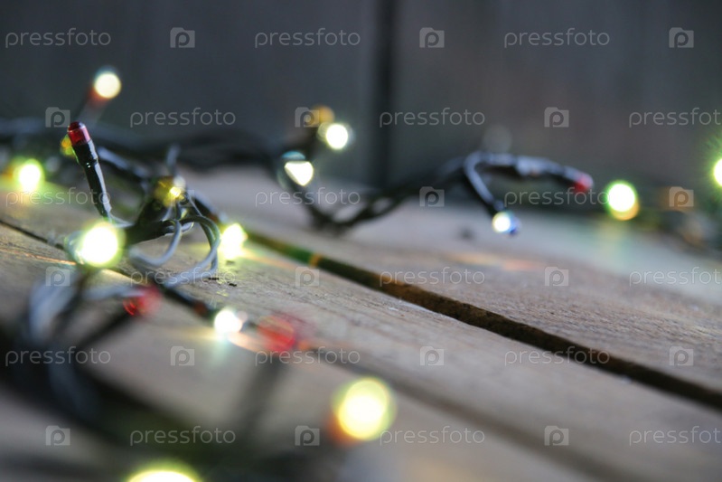 Рождественская гирлянда крупным планом. Новогоднее украшение дома