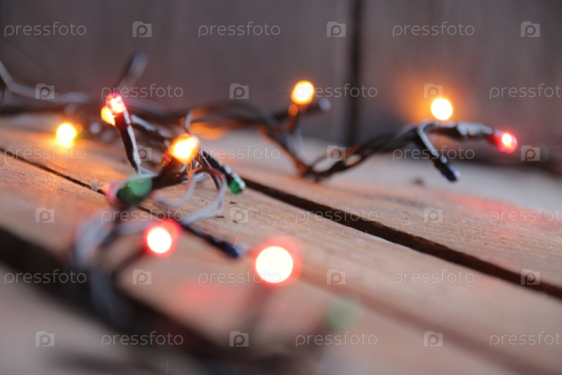 Рождественская гирлянда крупным планом. Новогоднее украшение дома