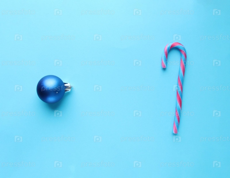 Веселая рождественская открытка. Конфета и Рождественская безделушка