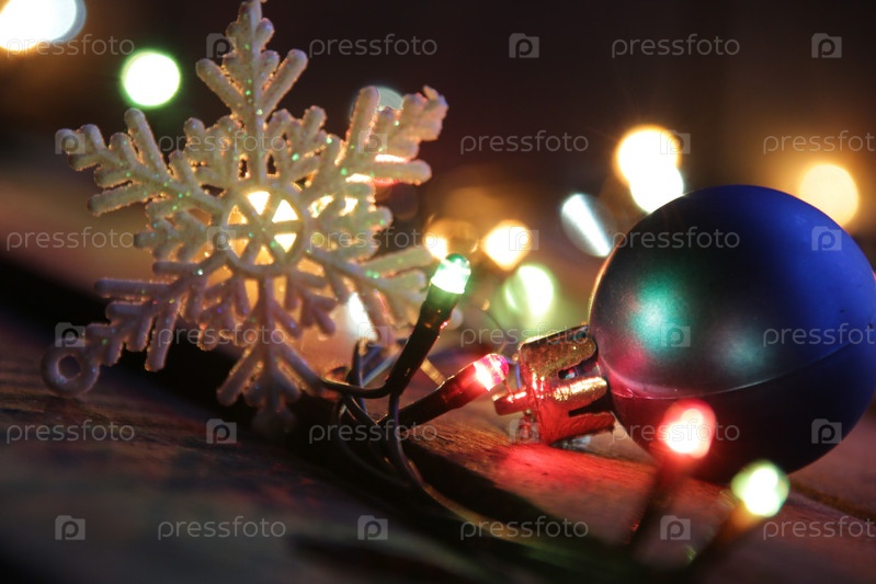 Рождественская гирлянда крупным планом. Новогоднее украшение дома