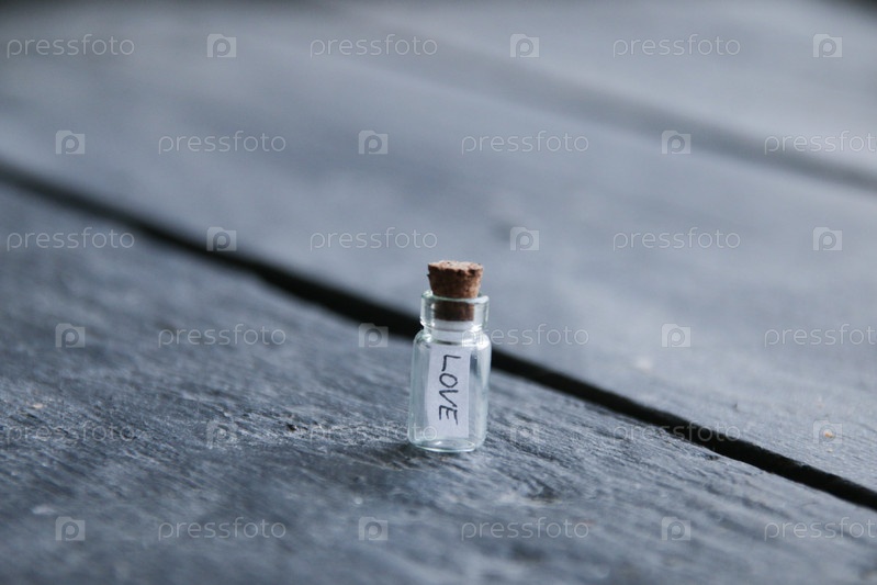 Концепция любви. Бутылка с надписью любовь. Винтажный стиль