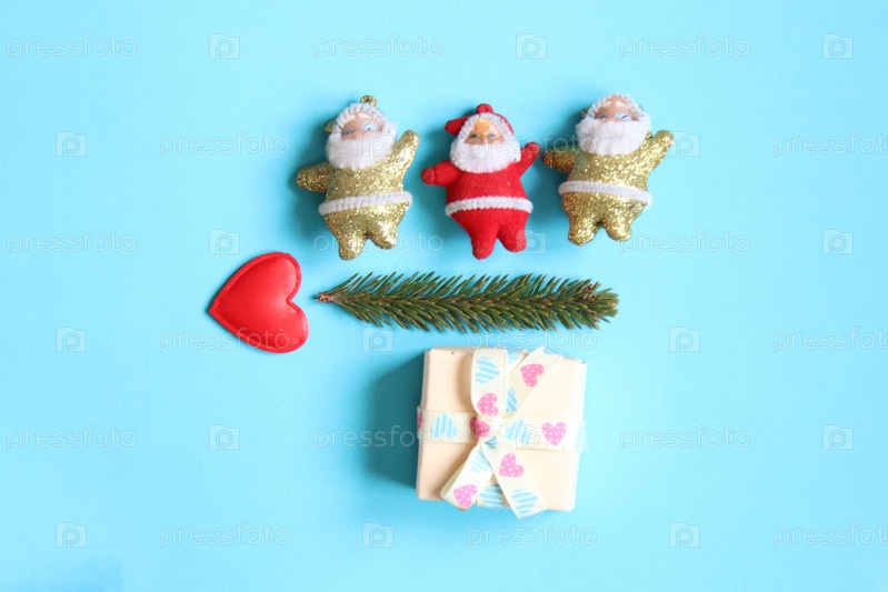 Концепция счастливого Рождества. Три Деда Мороза и еловая ветка