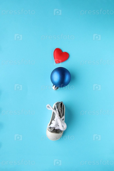 Веселая рождественская открытка. Рождественская безделушка и сердце