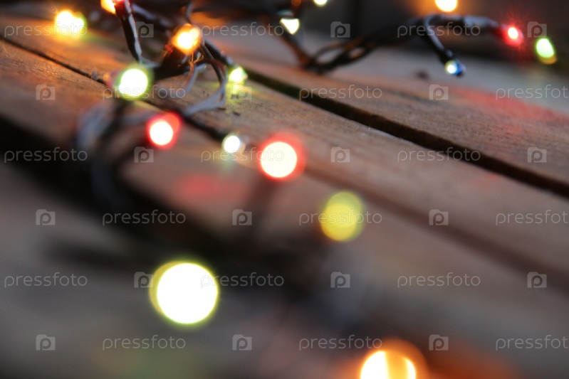 Рождественская гирлянда крупным планом. Новогоднее украшение дома