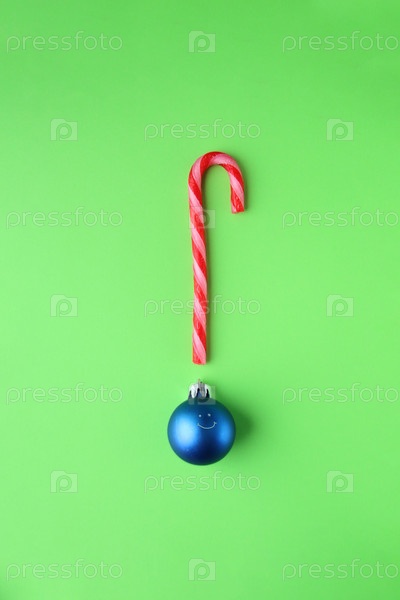 Веселая рождественская открытка. Конфета и рождественская безделушка с улыбкой