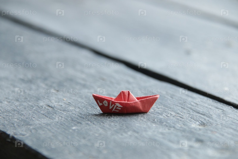 Валентинка.Бумажная лодка с надписью love, романтический фон
