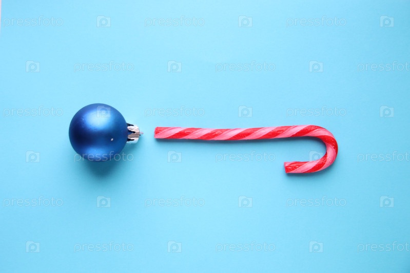 Веселая рождественская открытка. Конфета и Рождественская безделушка
