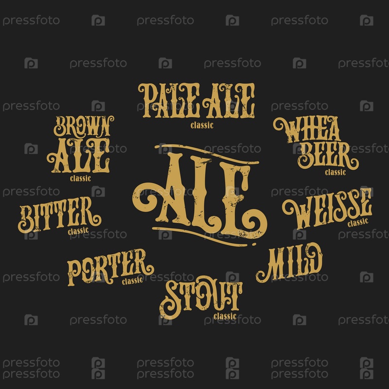 Векторная иллюстрация. Установите типы эля. Эль — сорт пива, который производится путем конного брожения. Установите типы рукописных надписей. Празднование шаблона дизайна