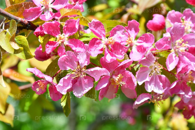 Розовые цветы яблони После дождя