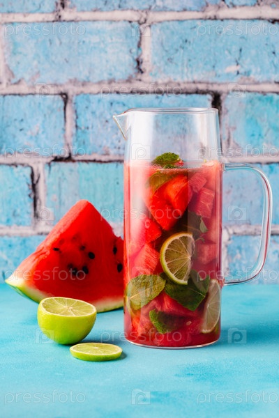 Свежий вкусный вкусный арбузный лимонад на синем фоне