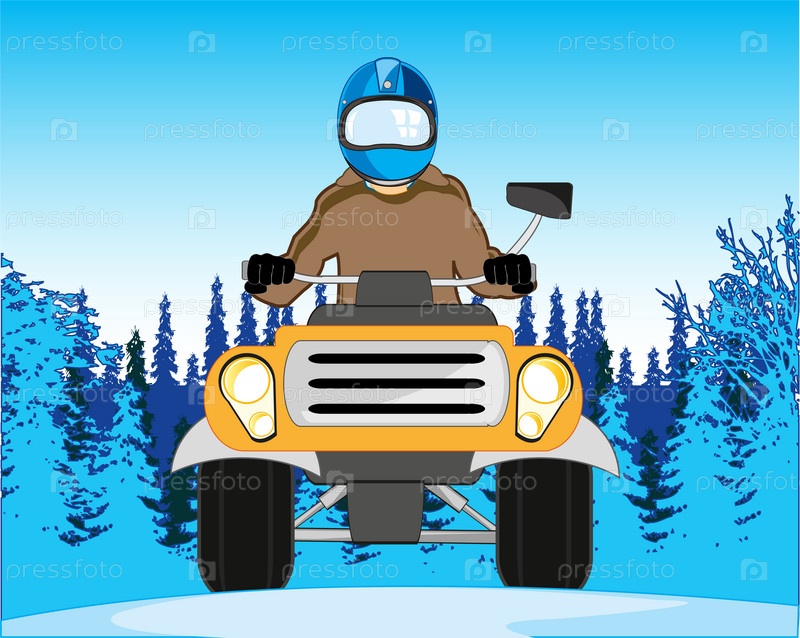 Люди на квадроциклах в середине зимнего леса