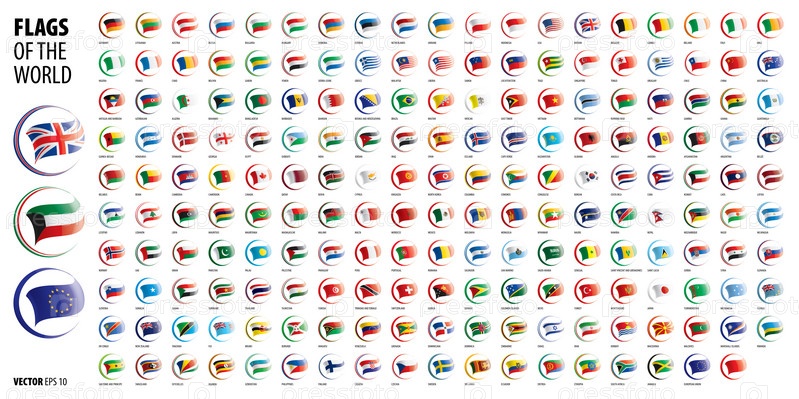 Национальные флаги стран. Векторная иллюстрация на белом фоне