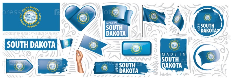 Векторный набор флагов американского штата Южная Дакота в разных исполнениях