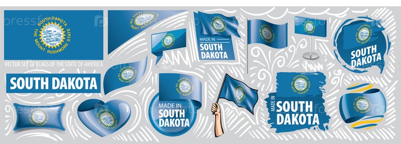 Векторный набор флагов американского штата Южная Дакота в разных исполнениях