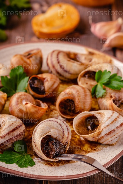 Улитки с маслом на тарелке