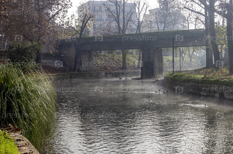 Вид на реку Литеос в Трикале (регион Фессалия, Греция)