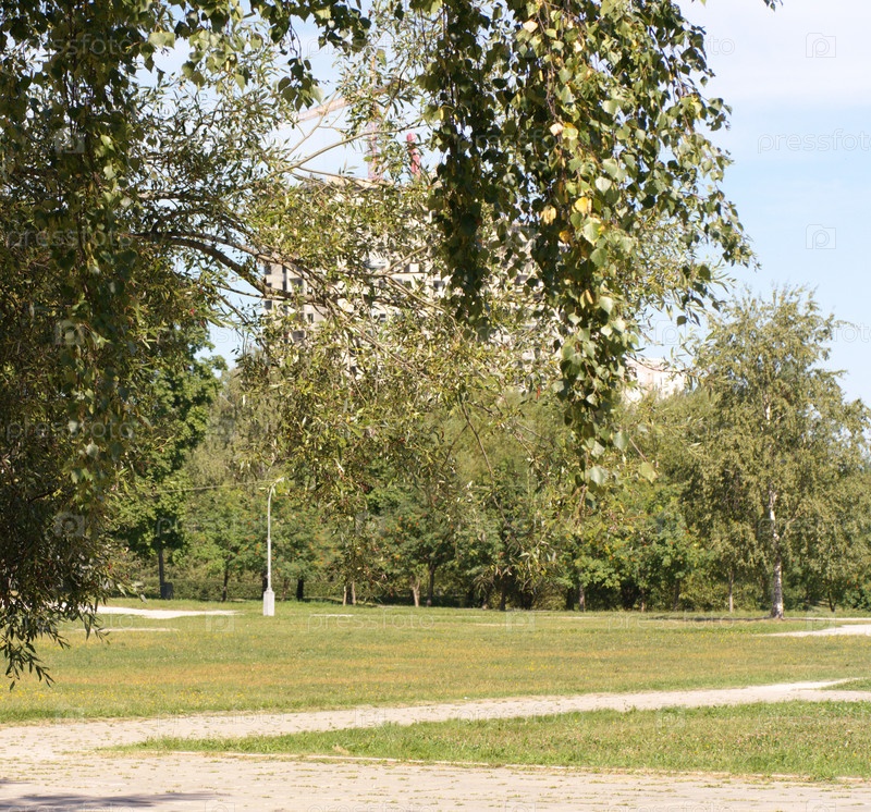 Дорожка в парке в сухой солнечный летний день