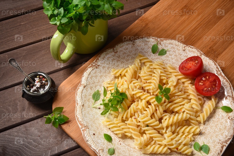 Паста фузилли на тарелке