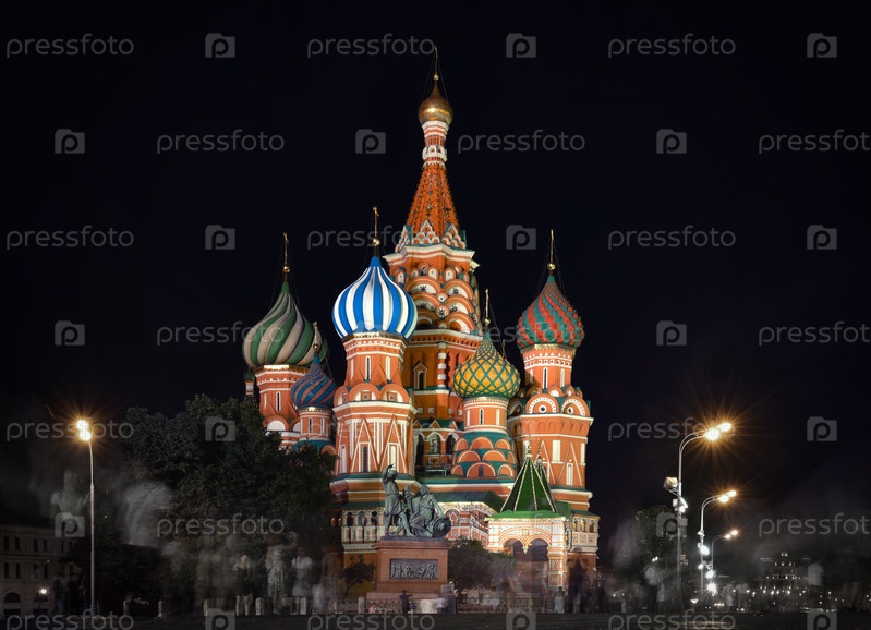 МОСКВА, Россия - 06 августа 2016 г.: Собор Василия Блаженного ночью