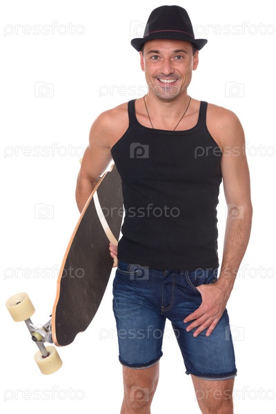 Мужчина держит в руке лонгборд