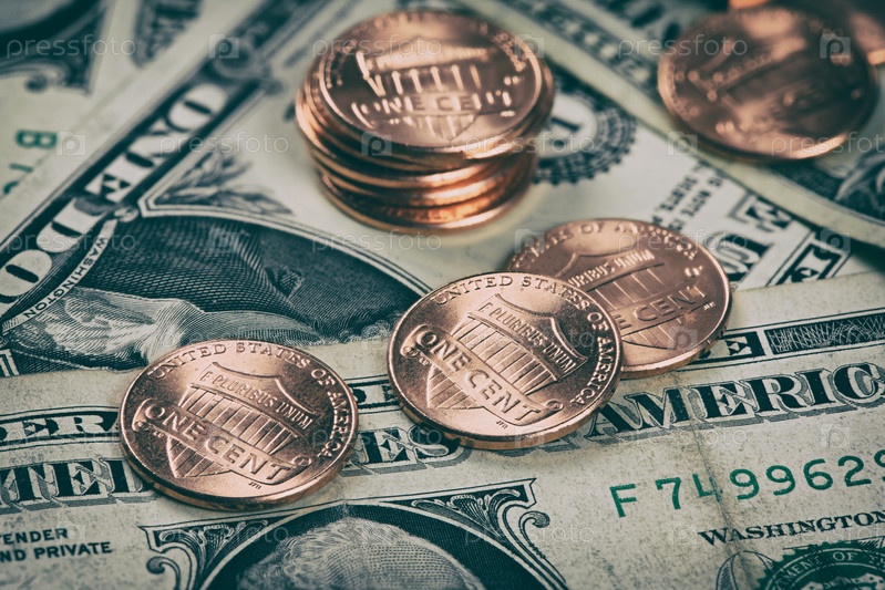 Один цент и доллары. Денежный фон