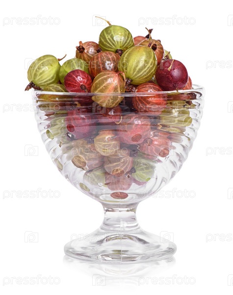Вазочка или креманка полная зеленого спелого крыжовника, изолирована