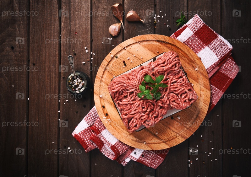 Мясной фарш на деревянном столе