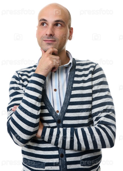 Красивый стильный парень смотрит вверх и думает