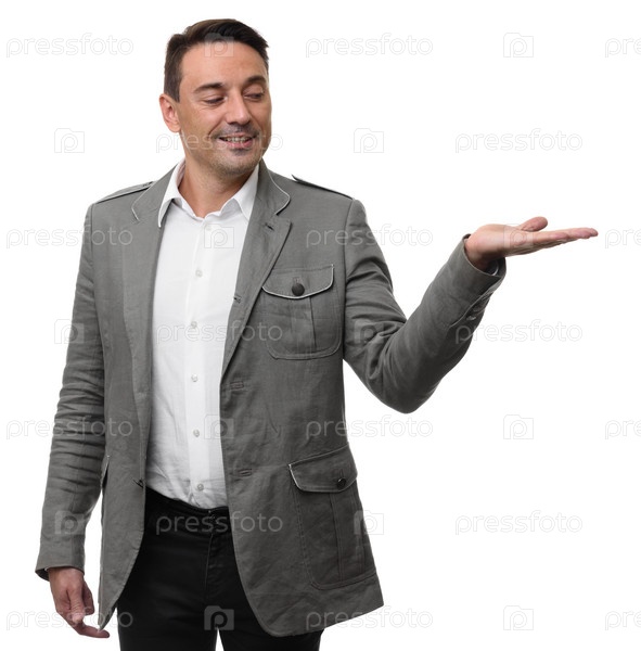 Мужчина держит что-то на ладони