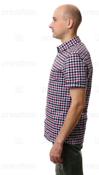 Профильный портрет лысого парня в клетчатой рубашке