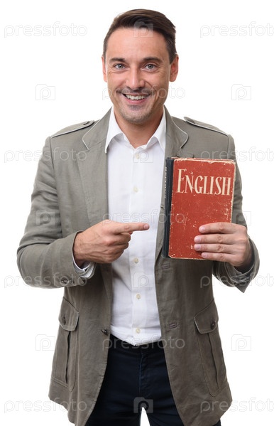Учитель английского держит словарь