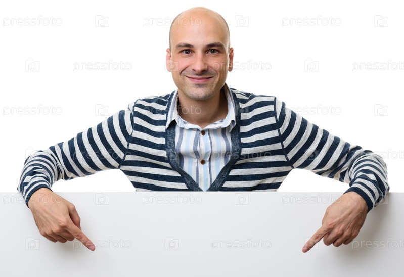 Портрет счастливого человека с пустой рекламной доской