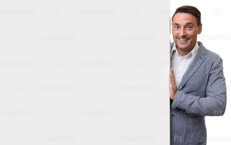 Красивый дружелюбный мужчина держит пустую доску