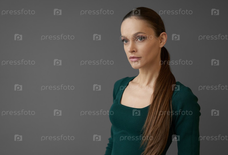 Портрет красивой молодой женщины на сером фоне