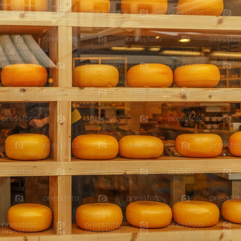 Головки сыра в витрине