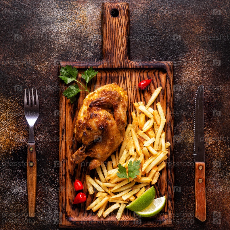 Половина жареного цыпленка Пири Пири с картофелем фри