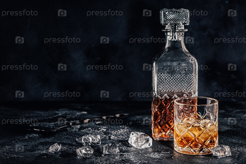 Стакан виски с квадратным графином