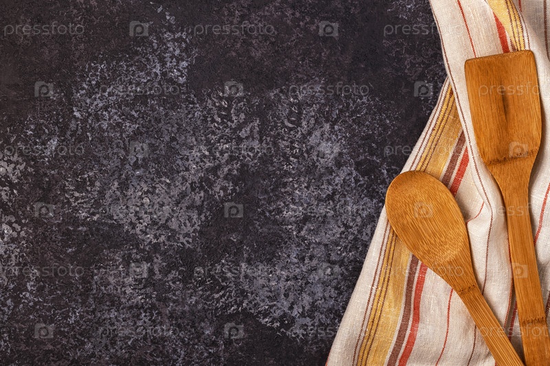 Кухонный фон с полотенцем и кухонными принадлежностями