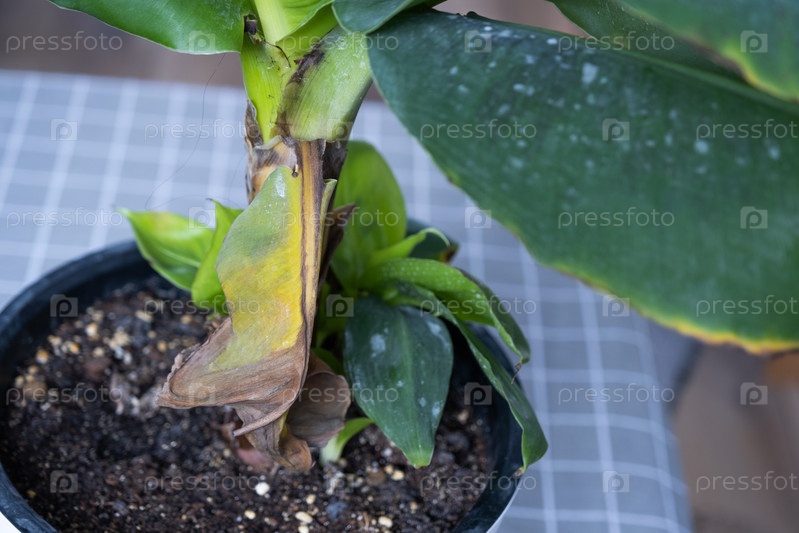 Проблемы при выращивании домашних растений Проблемы при выращивании домашних растений Банан Муса- листья листья с желтыми сухими кончиками, увядшие, пораженные паутинным клещом, перелив, загнивание корней