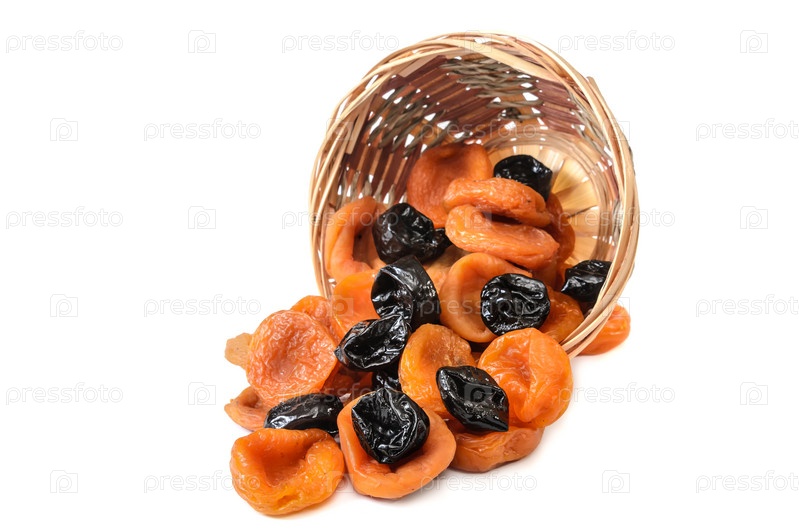 Курага в корзине на белом фоне с мягкой тенью
